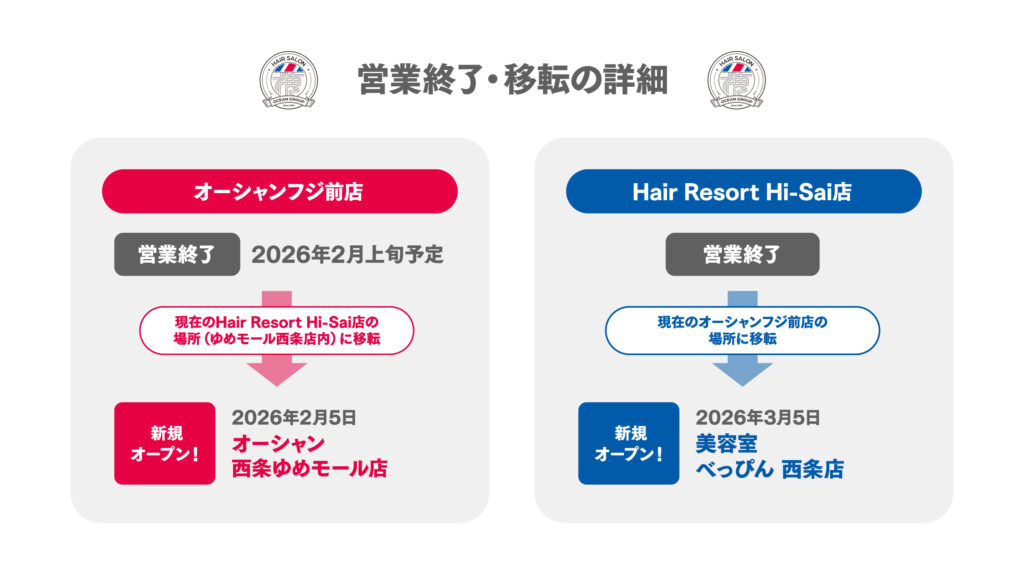 【オーシャンフジ前店】【Hair Resort Hi-Sai】閉店・移転のお知らせ